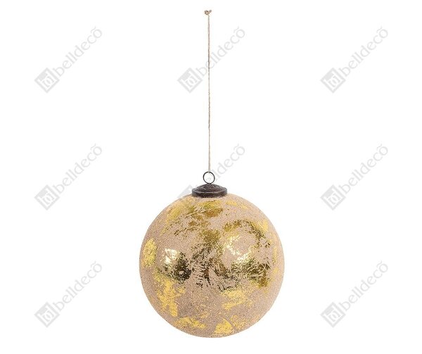 Piękna, elegancka, szklana bombka zdobiona złotym zdobieniem. Bombka ma kształt klasycznej, okrągłej bombki.