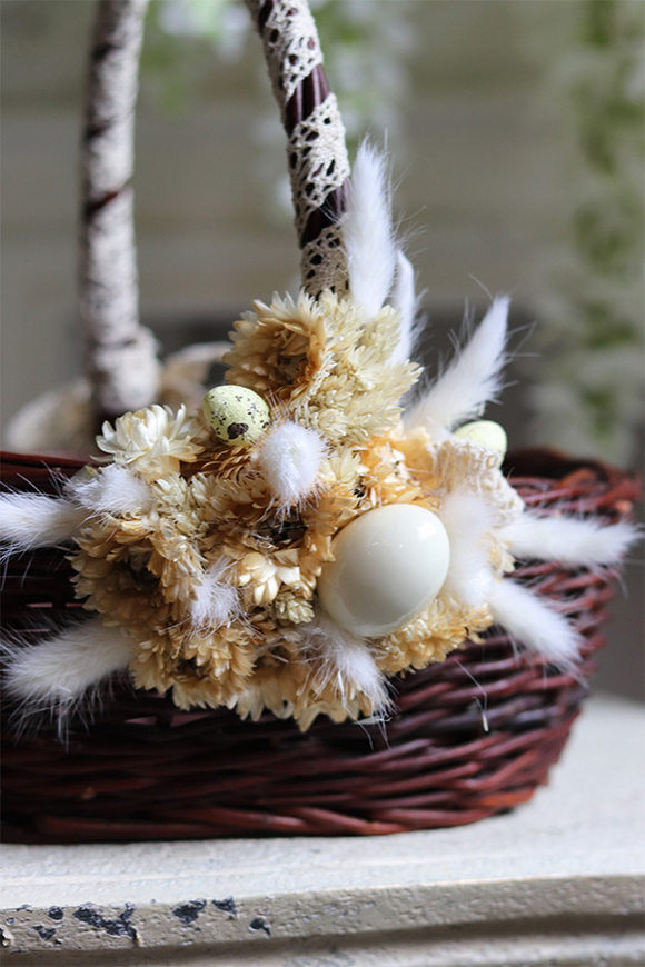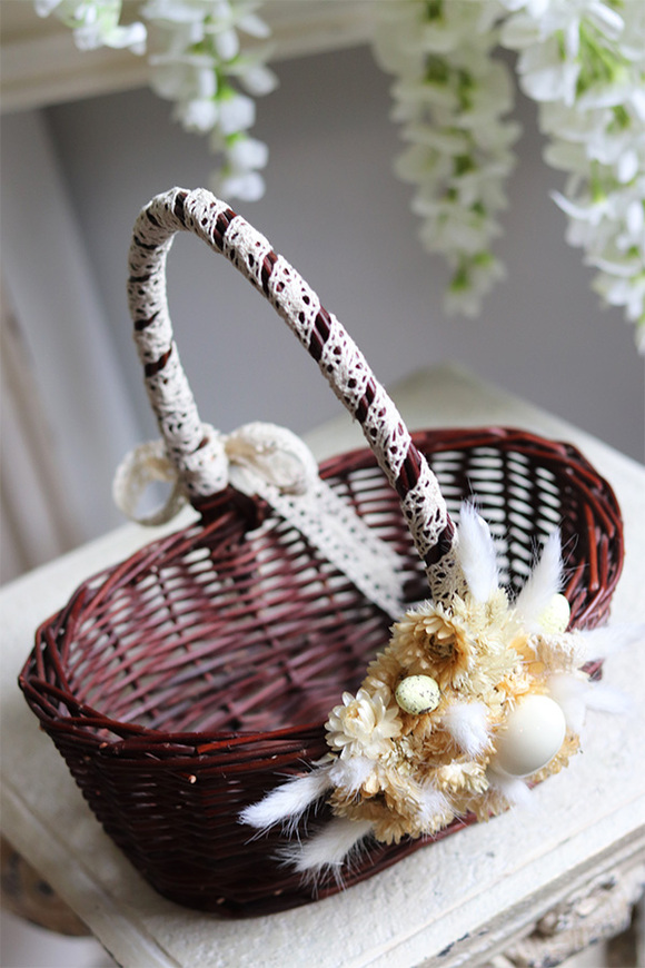 Koszyczek wielkanocny Celia, przyozdobiony subtelną dekoracją ze sztucznych kłosów.