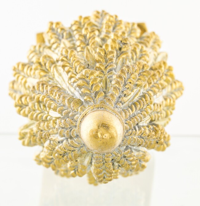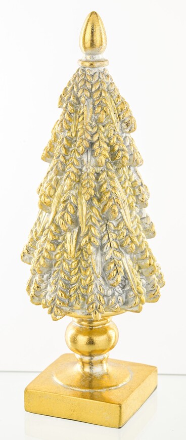 Figurka złotej, choinki, świerku o naturalnych kształtach drzewka, zamiast gałęzi oryginalna improwizacja w kształcie kłosów zboża. Piekna, artystyczna dekoracja świąteczna, może stanowić klasyczny dodatek do dekoracji stołu, komody, parapetu okiennego. Urocza propozycja na prezent.