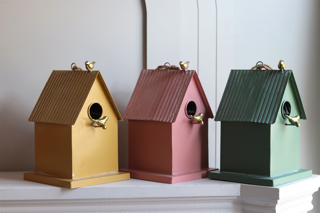 Urocza figurka - domek dla ptaków z metalu.