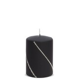 Elegancka świeca w kolorze czarnym zdobiona kryształkami. Świeca sprawdzi się jako dekoracja okazjonalna i świąteczna, można wyeksponować ją w bożonarodzeniowym stroiku, wianku, na lustrzanej tacy.
