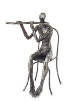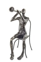 Elegancka srebrna figurka z wysokiej jakości tworzywa, przedstawiająca muzyka.