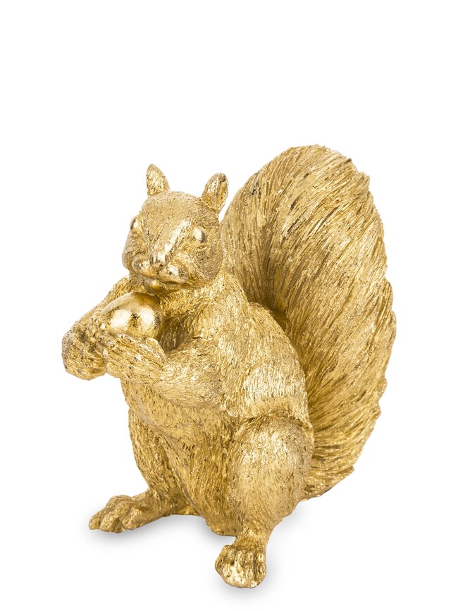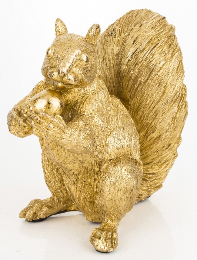 Elegancka złota figurka z wysokiej jakości tworzywa, przedstawiająca uroczą wiewiórkę.