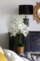 Storczyki, które zostały użyte do wykonania tej pięknej dekoracji mają mięsiste, wyjątkowo duże, naturalnie białe kwiatostany(offwhite). Na ich szczycie pojawia się od kilku do kilkunastu kwiatów i pąkó...