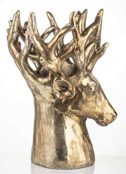 Oryginalna osłonka, donica w kształcie głowy jelenia w złotym kolorze. Piękna dekoracja dla roślin żywych i sztucznych, do dekoracji świątecznych, wyjątkowy pomysł na prezent.