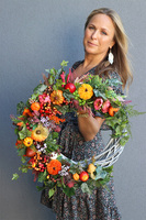 Wianek jest barwną dekoracją na drzwi, ścianę, taras i na stół, jako stroik, a także elegancką propozycja prezentu dla bliskiej osoby.