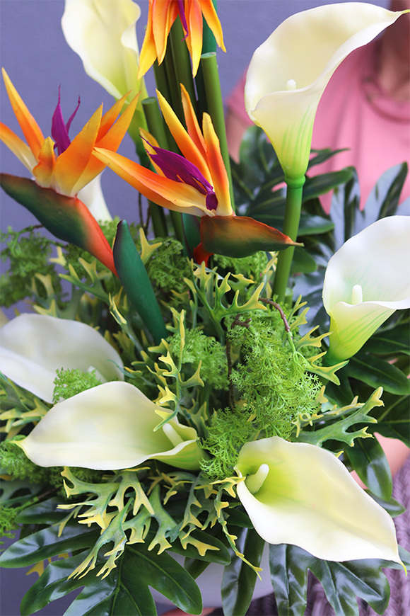 Kedura to wyjątkowa kompozycja do salonu, jadalni czy holu. Jest też doskonałą florystyczną dekoracją na ladę recepcyjną czy wnętrz hotelowych, salonów kosmetycznych.