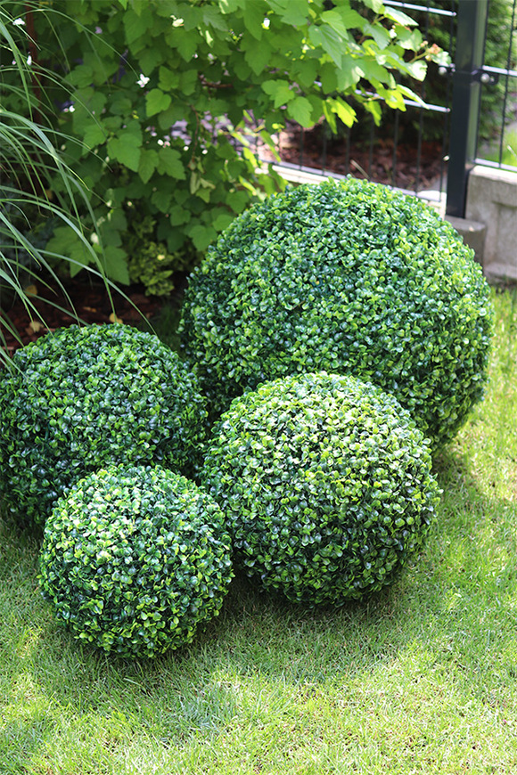 Sztuczne kule bukszpanowe Alli są lekkie, więc nadają się także do podwieszania.