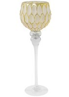 Lampion jest wykonany z wysokiej jakości grubego szkła, malowanego na kolory biały i złoty. Doskonały pomysł na drobny upominek dla bliskiej osoby.