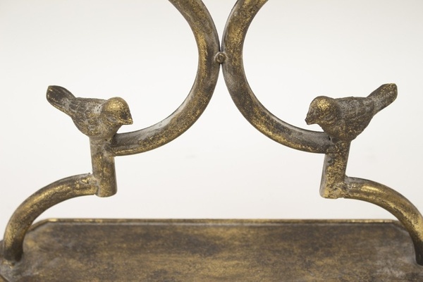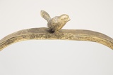 Eleganckie, stylizowane owalne lusterko stojące w złotej ramie z figurką ptaszka. Lustro stanowi piękny element dekoracyjny hollu, przedpokoju oraz sypialni.