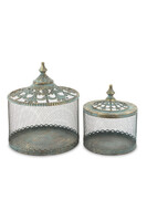 Komplet dwóch ozdobnych ażurowych naczyń, z niebiesko-złotej siatki z ozdobnymi pokrywkami. Pojemniki, bombonierki są urocza ozdobą do przechowywania słodyczy a także kobiecych drobiazgów.