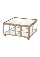 Elegancka, szklana szkatułka z lustrzanym dnem, puzderko na drobiazgi i biżuterię, na złotych, kulistych nóżkach. Szkatułka jest uroczym prezentem dla bliskiej osoby.