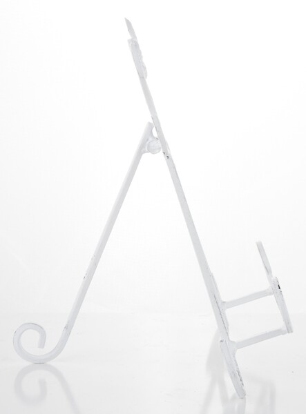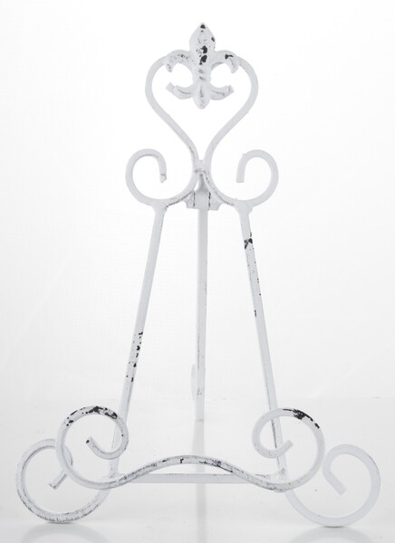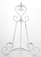 Stylowy, oryginalny stojak, podstawa na ozdobny talerz. Stojak wykonany z metalu, w białym kolorze z przecierkami. Stojak pozwoli na eleganckie wyeksponowanie pięknego, ozdobnego talerza.