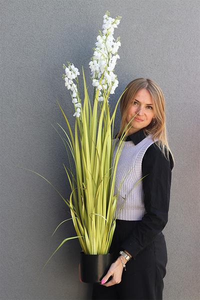 Walia, sztuczna trawa z białymi kwiatami, wys.120x45x45cm