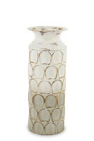 Oryginalny, metalowy wazon, z dekoracyjnym złotym, wypukłym wzorem. Wazon w eleganckich kolorach złota i bieli, doda blasku każdemu wnętrzu.