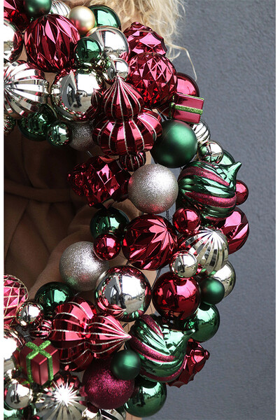 Wianek z bombek to idealna bożonarodzeniowa dekoracja dla firm, do wnętrz mieszkalnych, salonów sprzedaży i hoteli.
