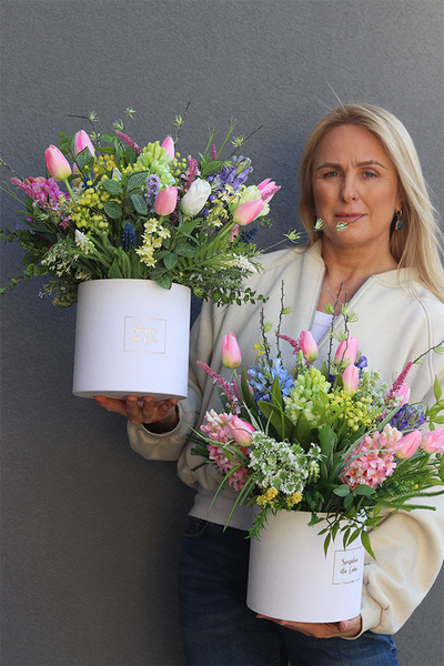 OD RĘKI Wiosna with tenDOM 3, flowerbox z tulipanami i hiacyntami, wys.45cm