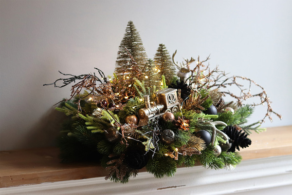 Stworzona od podstaw w naszej pracowni, idealna na świąteczny stół - w roli stroika lub szeroką półkę czy komodę, gdzie będzie stanowić prawdziwie magiczną dekorację.