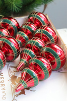 Zestaw dwunastu bombek w tradycyjnej kolorystyce świątecznej - zieleni i czerwieni z dodatkiem złotego brokatu.