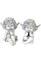 Figurka aniołka w szarych kolorach. Gustowna dekoracja okolicznościowa, dodatek do stroika, kompozycji, wianka. Figurka wykonana z tworzywa sztucznego.