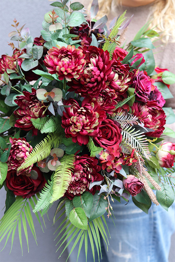 Wykonywana jest od podstaw w naszej pracowni florystycznej, przy użyciu starannie dobieranych, wysokiej jakości sztucznych kwiatów. Dzięki temu jest trwała i ładnie wygląda.