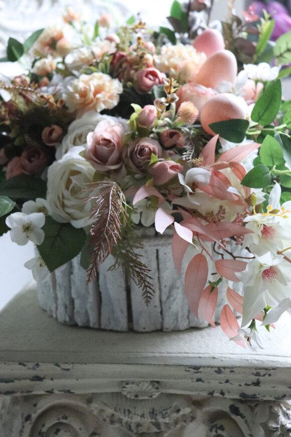 Dekoracja wykonywana jest od podstaw w naszej pracowni florystycznej, przy użyciu starannie dobieranych, wysokiej jakości sztucznych roślin i dodatków florystycznych.