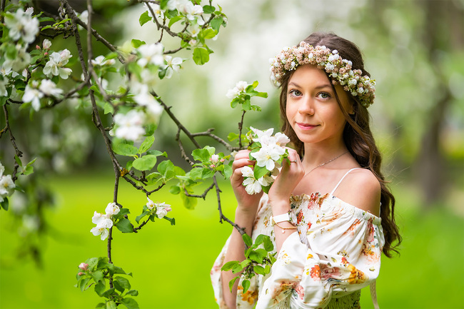 - możliwość noszenia wianka przez środek czoła, lub wysoko na włosach, w zależności od upodobań;