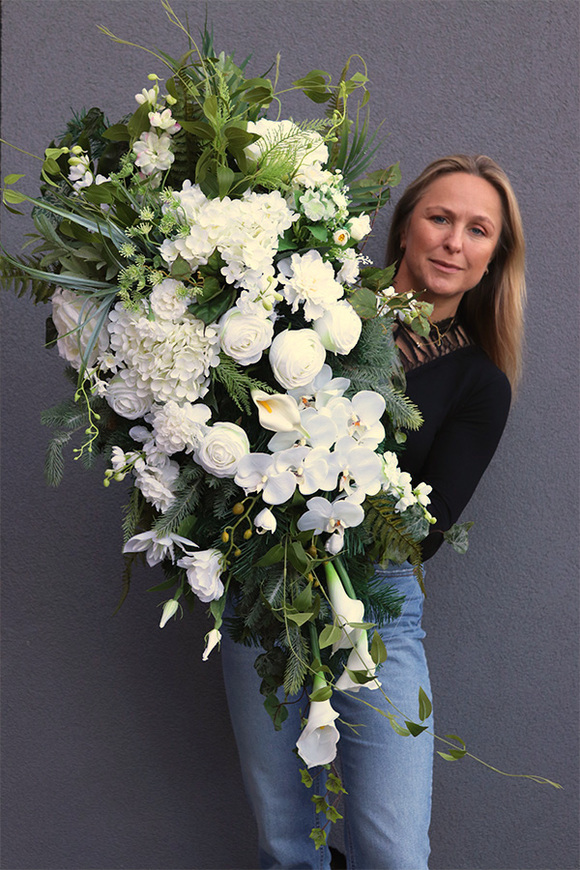 Wykonywana jest od podstaw w naszej pracowni florystycznej, przy użyciu starannie dobranych sztucznych roślin. Dzięki temu zawsze będzie piękna i wyjątkowa.