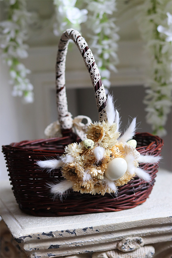 Koszyczek wielkanocny Celia, przyozdobiony subtelną dekoracją ze sztucznych kłosów.