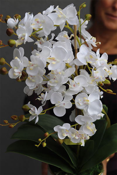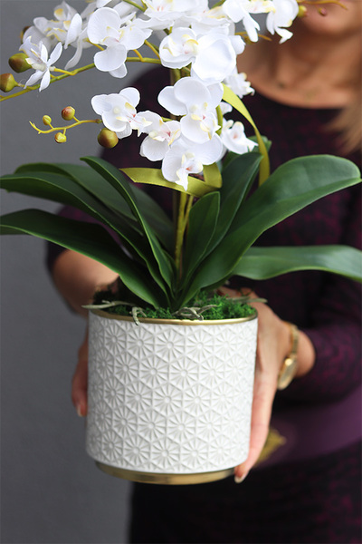Storczyk wygląda niezwykle realistycznie. Poprzez wyselekcjonowane kwiaty gustownie skomponowane w pięknej donicy z powodzeniem zastępują naturalną roślinę.