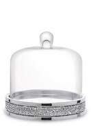 Piękna, szklana patera z kloszem ze srebrnymi zdobieniami na podstawie. Elegancki dodatek do salonu, jadalni, na parapet. Wyjątkowa świąteczna dekoracja.