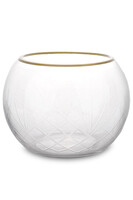 Piękny, szklany świecznik, lampion ze złotymi zdobieniami w kształcie kuli. Elegancki dodatek do salonu, jadalni, na parapet. Wyjątkowa świąteczna dekoracja.