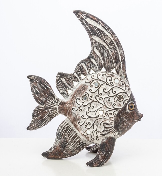 Figurka z wysokiej jakości tworzywa, imitującego egzotyczne drewno, przedstawiająca piekną sylwetkę ryby.