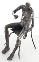 Elegancka srebrna figurka z wysokiej jakości tworzywa, przedstawiająca muzyka.