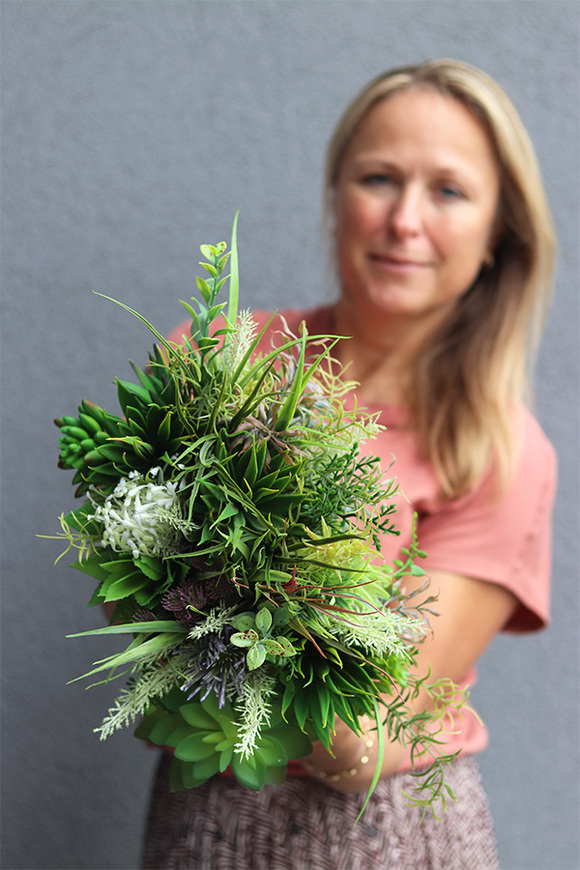 Oryginalna kompozycja sztucznych sukulentów w klasycznej, betonowej donicy, która wspaniale sprawdzi się w nowoczesnej przestrzeni biurowej lub domowej. Soczysta zieleń sukulentów i traw, różnorodność kształtów tworzą barwną, wyjątkową aranżację.