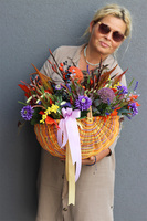 Jesienny Gaj, jesienny kosz z kwiatami, wym.47x65x34cm