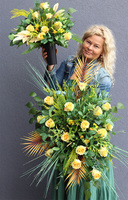 komplet dekoracji nagrobnych Złota Róża, wiązanka i bukiet we wkładzie