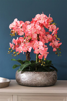 Koralovy, różowy storczyk w metalowej misie, wys.68cm