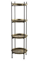 Oryginalny, metalowy, czteropoziomowy kwietnik, stojak na nóżkach w eleganckich, starozłotych barwach, artystycznie przecierany, piękna i praktyczna dekoracja. Lekki, modny kwietnik doskonale pasuje do wyeksponowania roślin żywych i sztucznych w salonie, w holu i na werandzie.