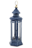 Metalowy lampion w granatowym kolorze z otwieranymi drzwiczkami. Lampion jest piękną ozdobą, ktora stwarza bajeczny klimat w każdym pomieszczeniu. Urocza dekoracja świąteczna.