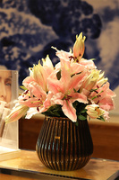 Liliowe Hillton, kompozycja kwiatowa w naczyniu, wym.55x50cm