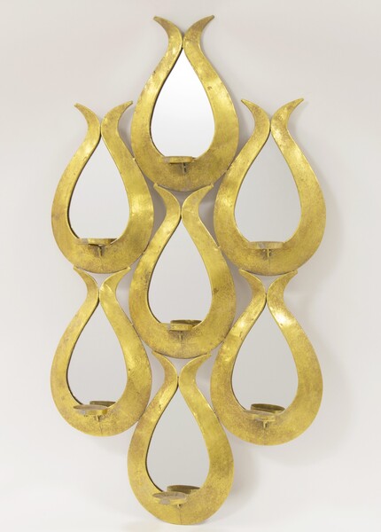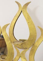 Eleganckie, stylizowane lustro w ozdobnej, artystycznie modelowanej ramie w kolorze złotym. Lustro pełni również funkcje świecznika, do każdego zwierciadła doczepiony jest mały lichtarzyk na tealighta. Lustro stanowi piękny element dekoracyjny hollu, przedpokoju oraz sypialni.