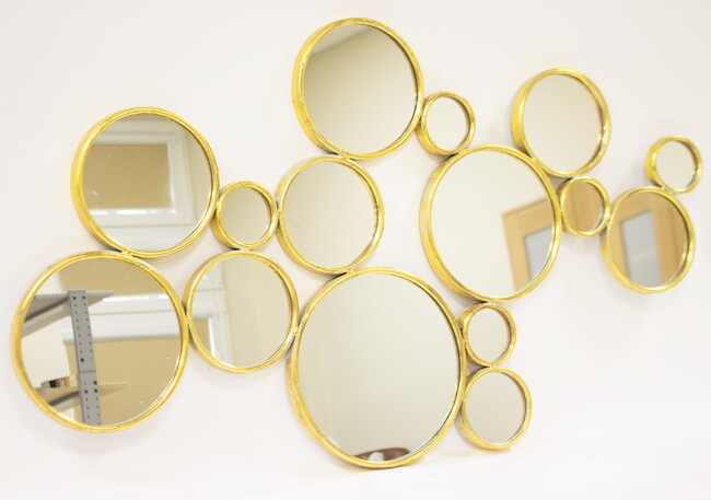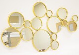 Eleganckie, stylizowane lustro w ozdobnej, artystycznie modelowanej ramie w kolorze złotym. Lustro stanowi piękny element dekoracyjny hollu, przedpokoju oraz sypialni.