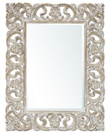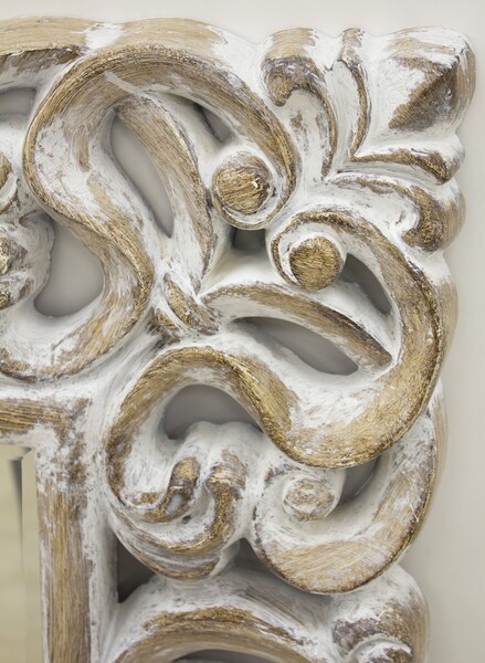 Eleganckie, stylizowane lustro w ozdobnej, artystycznie przecieranej ramie. Lustro stanowi piękny element dekoracyjny hollu, przedpokoju oraz sypialni.