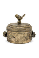 Oryginalne, misterne puzderko z pokrywką, ozdobione kwiatem róży i sylwetką ptaszka. Szkatułka to piękne pudełko na kobiece drobiazgi i słodycze. Doskonała propozycja na uroczy upominek.