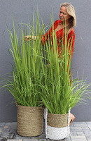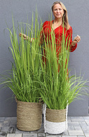 Egzotyczna kompozycja dwóch sztuk wysokich traw pampasowych, zaaranżowanych w etnicznych koszach w st...