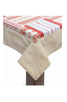 Obrus będzie stanowić wspaniałą dekorację, która pomoże Ci uzyskać prawdziwie świąteczną, ciepłą atmosferę panującą w Twoim domu.Obrusik został ozdobiony ciekawym wzorem, centralną jego częścią jest motyw świąteczny. Po brzegach obru...