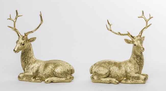 Wyjątkowa figurka okazałego renifera z pięknym porożem w złotych barwach. Figurka jest piękną, świąteczną ozdobą mebli, stroika lub wianka bożonarodzeniowego.
