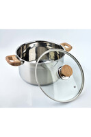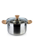 Garnek z pokrywką z kolekcji Carrot z wysokiej jakości ze stali nierdzewnej, posiada nienagrzewający się uchwyt z tworzywa sztucznego i uchwyty boczne z modnym wzorem drewna. Posiada wewnętrzną miarę pojemności.