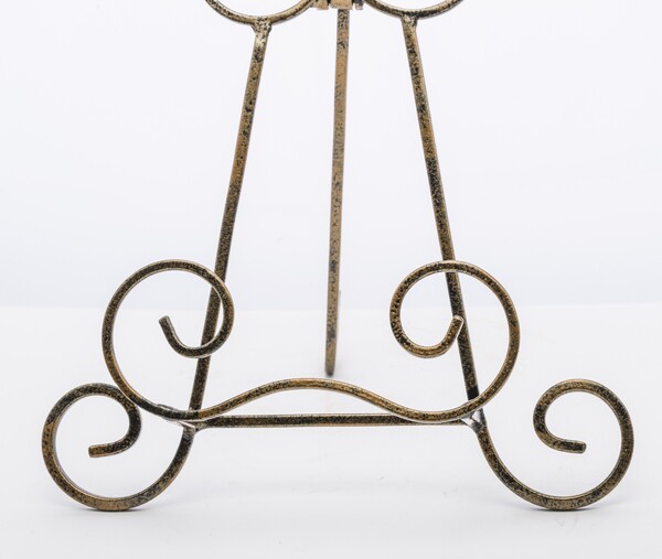 Stylowy, oryginalny stojak, podstawa na ozdobny talerz. Stojak wykonany z metalu, w białym kolorze z przecierkami. Stojak pozwoli na eleganckie wyeksponowanie pięknego, ozdobnego talerza.